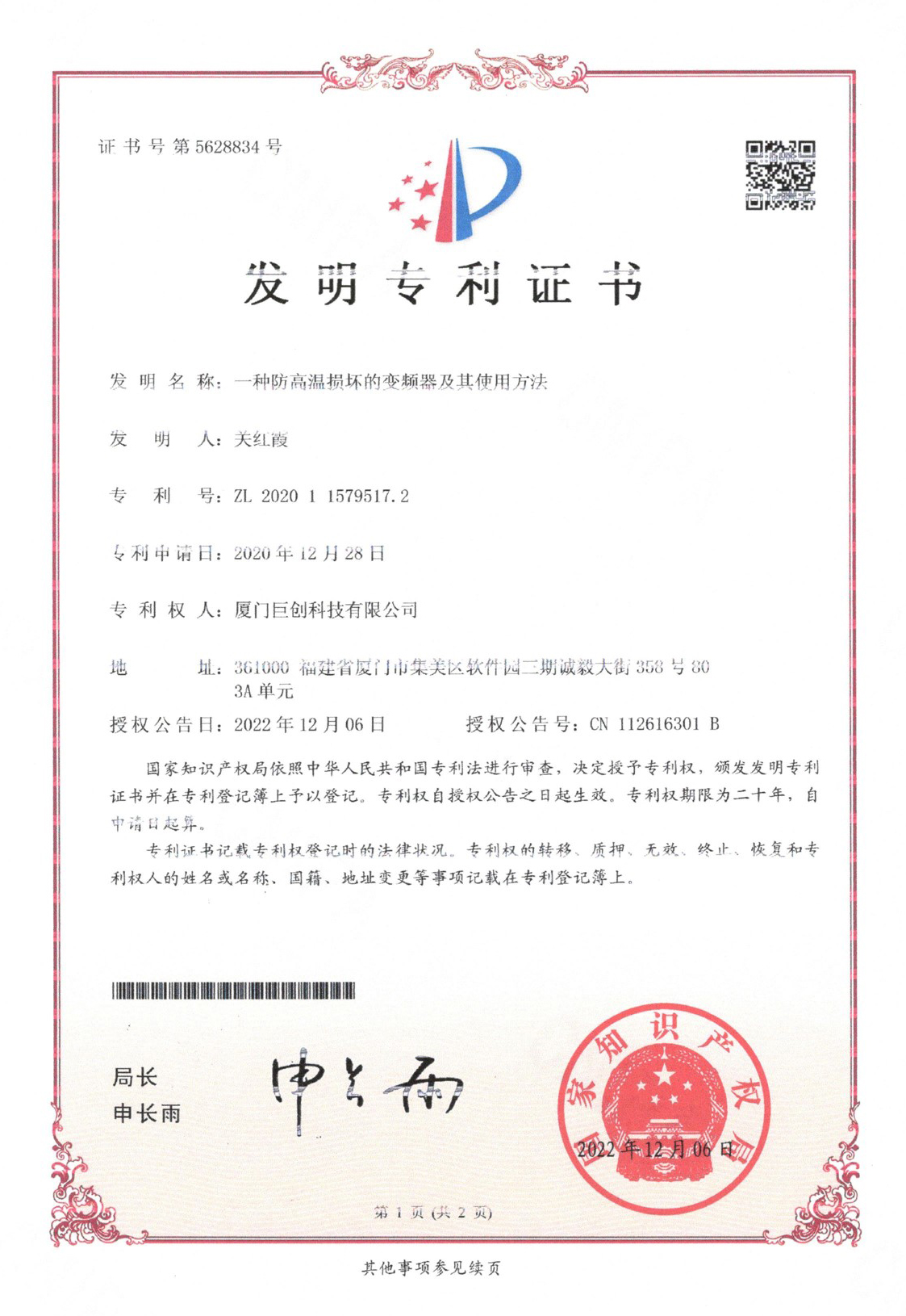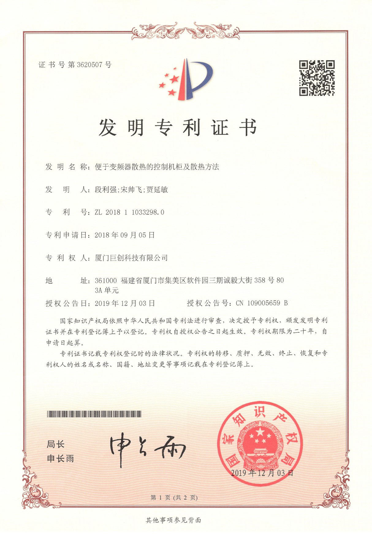 • 公司目前共有發(fā)明專利、實用新型、軟著等合計39項,發(fā)明專利“便于變頻器散熱的控制機柜及散熱方法”為公司若干個項目成功中標(biāo)發(fā)揮了決定性的作用。